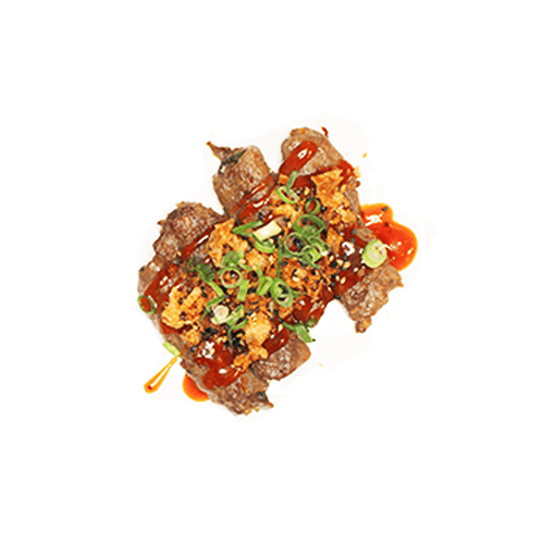 Gyu niku roll(8st) Beef nigiri (2st)Beef yakiniku( gegrild rundvlees met yakiniku saus )